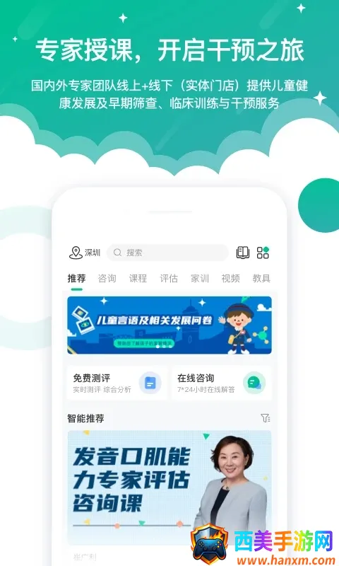 2. 海量精品课程随心学,涵盖课程商城、咨询、康复服务、言语训练管理等功能,足不出户在线学习和言语训练。