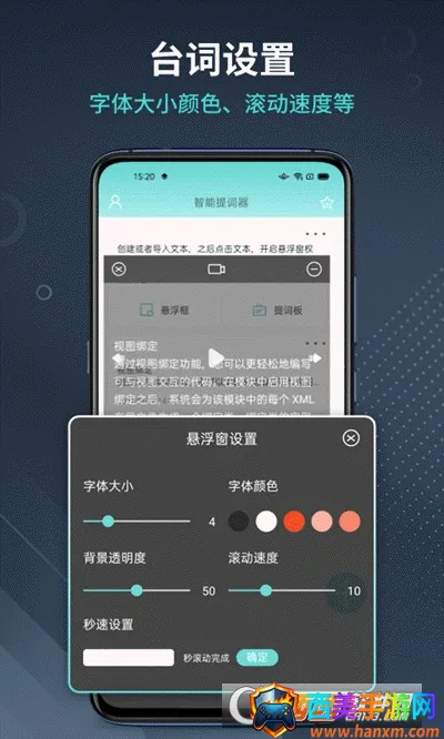 2、在设置中调整字体大小、颜色和背景透明度,还能设置台词滚动速度,确保阅读时清晰舒适,不会出现卡顿或太快读不完的情况。