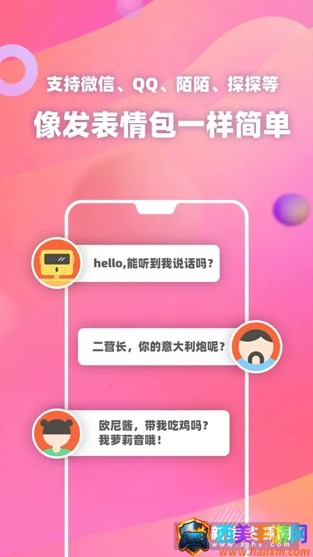 变声器语音包是款欢乐的手机应用,有丰富语音和变声效果。提供海量免费素材,支持多种变声器软件。具备录音编辑管理等功能,能输入文本转语音,还有游戏变声器,含多种预设参数,好用且会员功能免费。