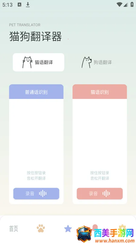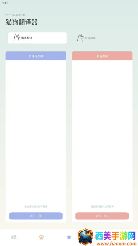 想知道你家宠物在说啥?宠物语音翻译器能帮你!它能把宠物的叫声,像喵呜声、吠声等,转化成人类能懂的文字或情绪提示,比如开心、生气或饥饿。这软件利用先进音频分析技术,借助AI实现智能分析和翻译。它支持猫和狗的声音翻译,未来可能涵盖更多宠物。使用时部分功能需联网。虽然翻译结果仅供参考,但能极大增进你和宠物间的互动交流。界面简洁友好,操作简单。还支持录制保存宠物声音,方便长期观察。有丰富互动音效,增加不少趣味。提供多语言界面,还有基础免费功能,高级功能可订阅或内购解锁。无论是想深入了解宠物需求,还是增添互动乐趣,它都是不错选择,快去试试吧!