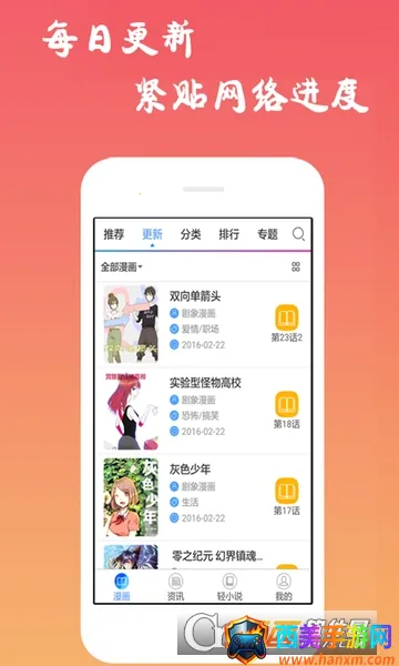 拥有超十万部中文漫画,打造沉浸式二次元世界。致力于提供全面快速新鲜的漫画阅读服务,更新提醒及时通知用户,优化阅读体验,翻页流畅操作便捷。