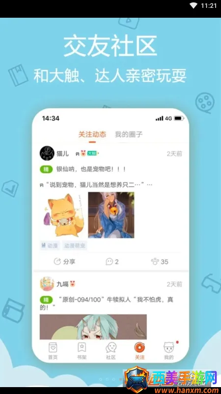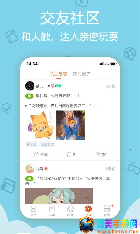 2、互动社区超有趣:内置互动社区,可畅所欲言分享观后感、安利心头好,还能进行手绘大触圈主竞选,轻松结识志同道合的二次元同好。