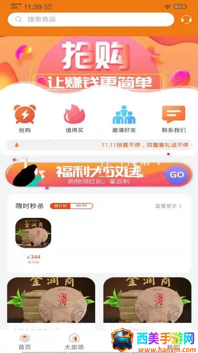 1. 限时抢购:设有限时抢购板块,每日开放,帮用户省钱购物。