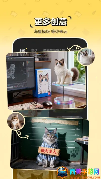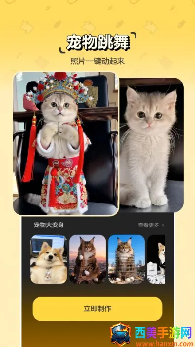 玩法超多样,不仅支持一键生成宠物写真,效果自然又有趣,还能将宠物形象制作成短视频。整体界面清晰直观,适合养宠用户日常记录与分享。