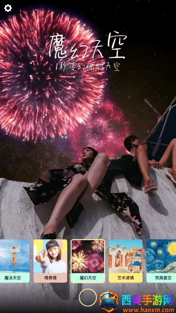 3. 功能强大玩法多:支持拍照、录像、GIF动图三种模式自由切换,每种模式可叠加实时特效。还有AI面部追踪添加微表情、一键替换天空、视频片段剪辑等众多有趣功能。