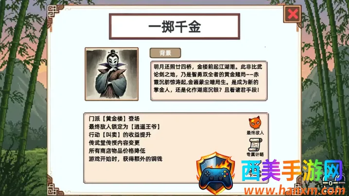 小小侠客模拟器免广告版是一款武侠策略独立游戏,融合Roguelike与武学养成。有上百种武学、计略、随机事件和敌人,玩法丰富。可自由组建流派、探索地图,无广告干扰,每次冒险都是全新体验,当前版本持续更新。