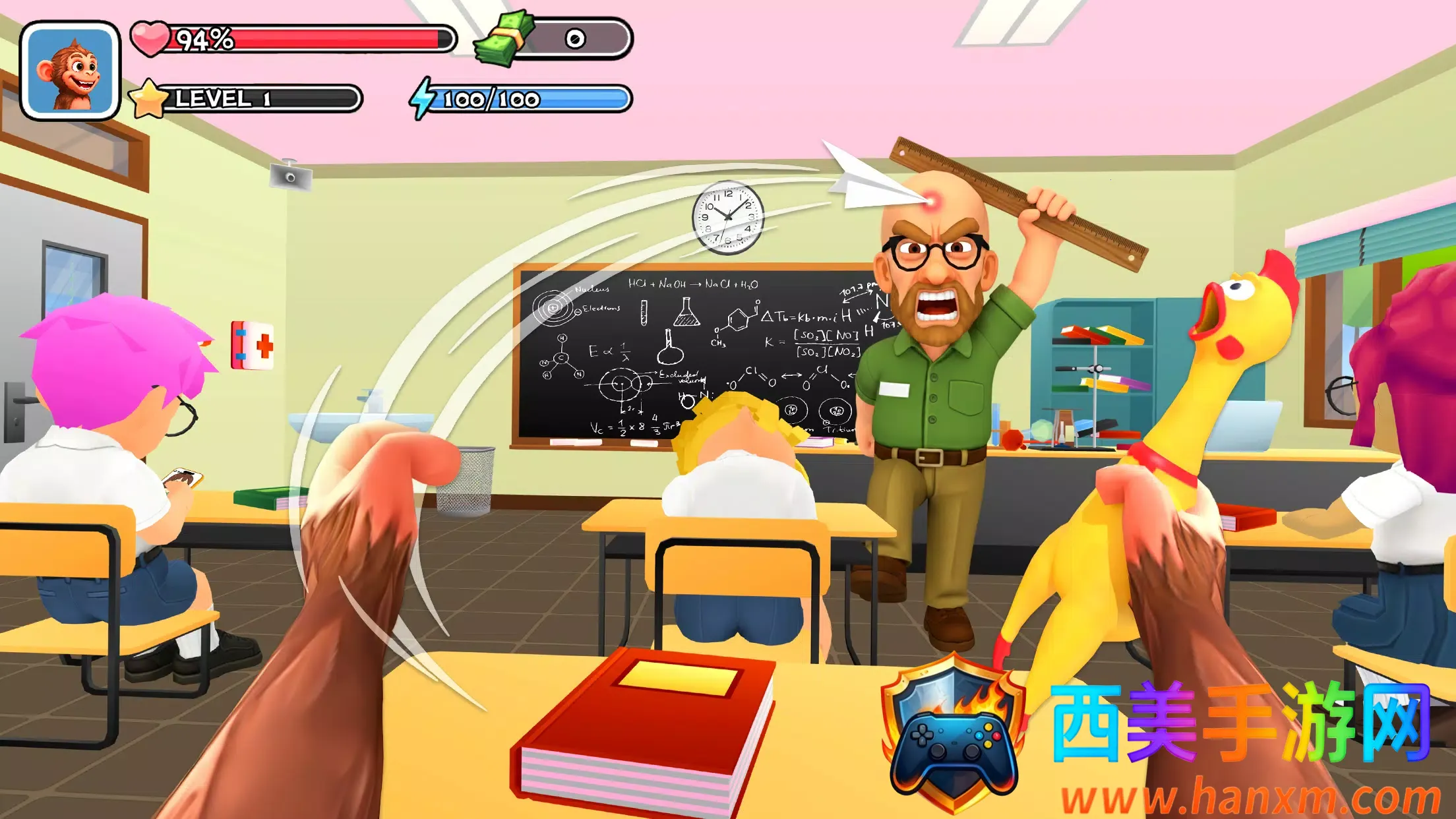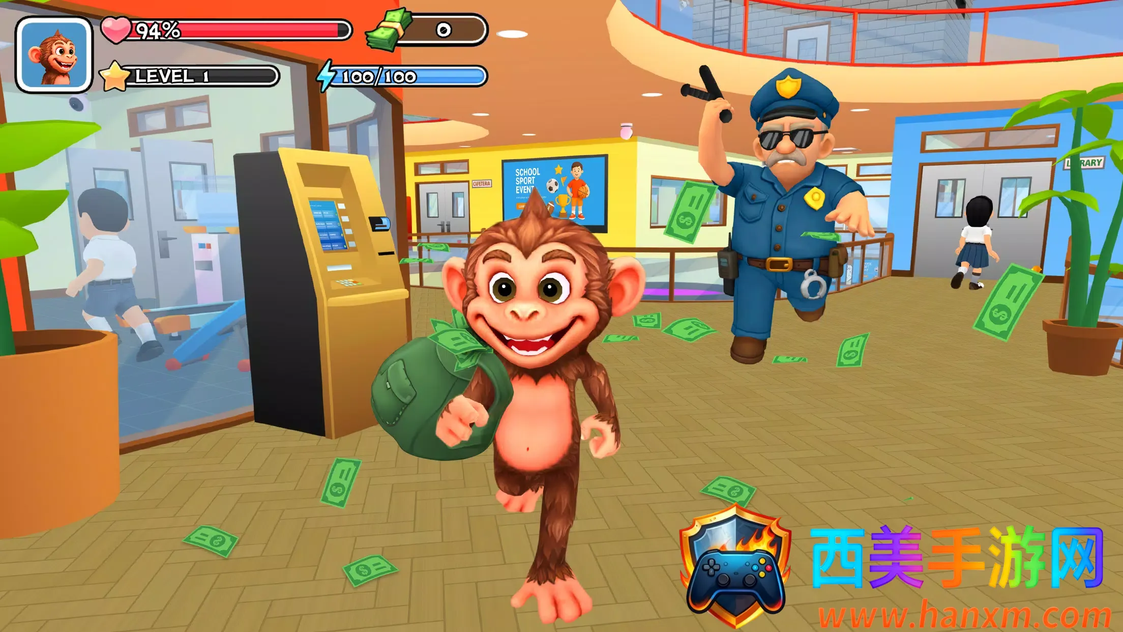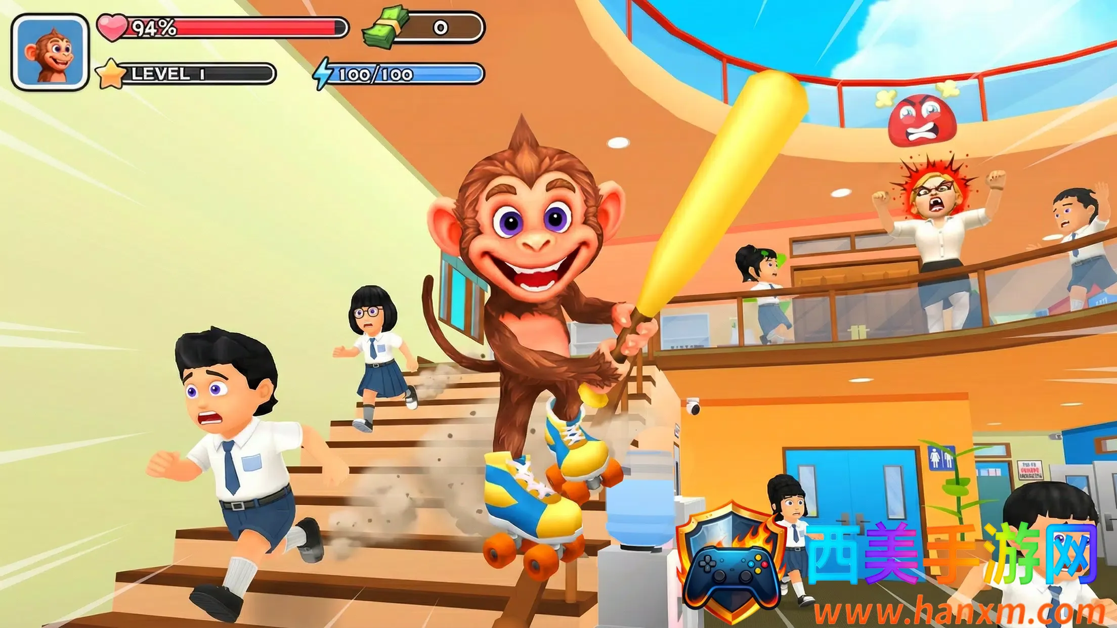 这是一款能带来超疯狂校园体验的游戏。你将化身小猴子,立志成为恶作剧之王。这里是终极沙盒游戏,有着完全自由的玩法。你能凭借顽皮身手在校园随意互动、破坏与恶作剧,学校就是你的游乐场,一切皆可成为武器或道具。拥有完全自由的操作,可拿起任何物品决定用途,比如砸碎花瓶、扔椅子到窗户上。还有疯狂的物品栏,能以意想不到的方式使用普通物品,像用棒球棍制造混乱、把烤面包机变成爆炸装置等。完成挑战性恶作剧任务可解锁新工具和伪装,在不被老师发现的情况下尽情制造混乱,成为令人难忘的传奇恶作剧者,赶紧开启这场疯狂恶作剧之旅吧。