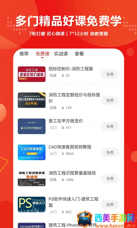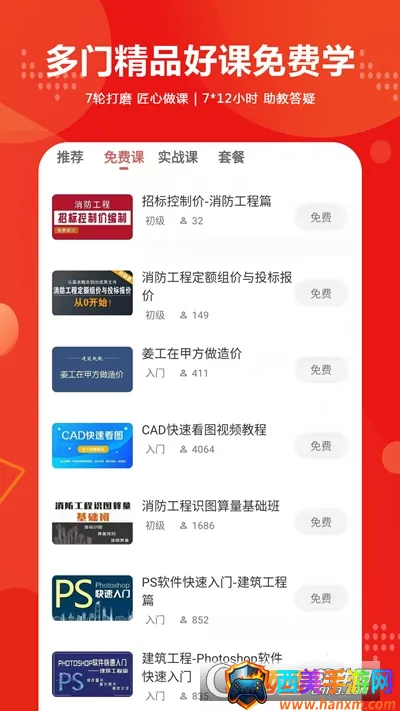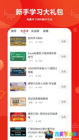 这里有海量学习资料免费领,还有多门精品好课能免费学,经过7轮打磨,7到12小时精心制作。有专业助教随时答疑,让你学习无忧。它提供分级学习模式,可根据个人情况自由选择,告别传统定时定点学习,更灵活自由。不定时更新推送新课,随时学新知识。还能随时查看个人学习情况和进度。新用户有大礼包福利。而且全免费无收费项目,资源优质精选。在建筑起航,你能轻松提升能力,丰富知识,高效学习建筑技能,实现自己的成长蜕变。