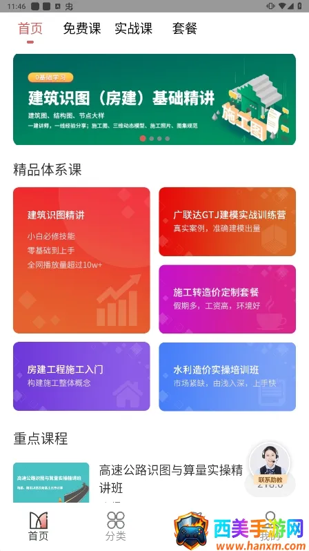 建筑起航是一款超棒的建筑学习平台,特别适合有公路路基图纸学习需求的朋友。这里课程超丰富,涵盖工程识图、施工技术、工程造价等多方面,就像一个建筑知识大宝藏。不管你是应届生想入行,还是施工员、预算员等在职人员,都能找到适合自己的课程。它有很多亮点,比如数万建筑人都在选,多门精品好课能免费学,还有7轮打磨的匠心课程,助教随时答疑。软件优势明显,有丰富建筑课程资源,能帮你高效学习。提供分级学习模式,可按个人情况自由选,告别传统定时定点学习,更灵活自由。不定时更新推送新课,让你随时学新知识。还有专业助教答疑,能随时查看个人学习情况和进度。新用户还有大礼包福利,海量学习资料轻松获取,能帮你深入理解公路路基图纸等建筑知识,不断提升自己,轻松解决学习难题。