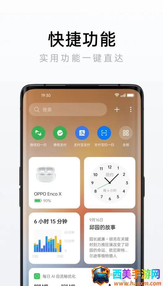 OPPO 速览优势显著。它是手机内置应用,小巧便携,内存小运行流畅。主界面分区清晰,信息展示直观。涵盖工作生活多方面,提供极致舒适服务。不同场景带来智能化体验,让生活更舒心。具备智能化提醒功能,能合理安排重要事件。支持快速获取信息、调用常用功能,还有无需下载安装的快速应用。能绑定手机号查快递动态、记录运动步数、显示天气股市等,功能丰富多样,满足多种需求。