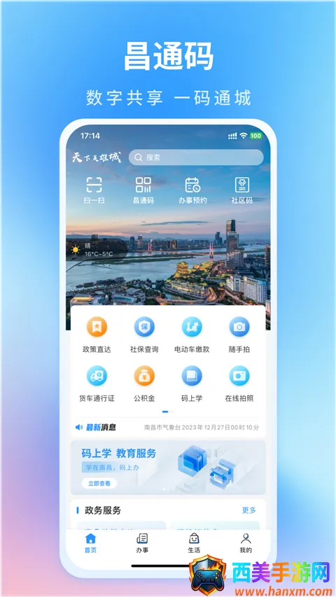 昌通码是一款备受关注的政务便民服务手机软件。它由云上南昌大数据运营有限公司开发,专为本地居民打造。其优势众多,操作界面简洁清晰,人人都能轻松上手。涵盖社保查询、公积金、政务服务等诸多功能,满足全方位生活所需。它将网络与政务完美结合,让人们无需亲临部门或网站,在软件上就能一站式处理政务办理与便民服务,像社保公积金预约挂号、实时公交扫码乘车、水电气缴费等常用服务都能轻松实现。而且采用实名认证系统,数据实时更新,安全可靠又能让用户获取最新资讯。总之,昌通码给市民带来了极大便利,是一款非常实用的软件。