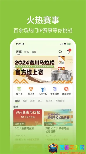 1. 海量赛事:可线上报名全国数十场马拉松越野赛、铁人三项等体育赛事,还有百余场热门IP赛事等你来挑战,更有机会获免费参赛名额等专属福利。