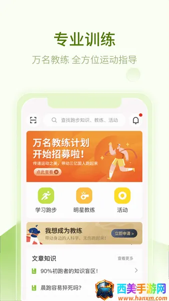 2. 专业指导:能快速获得最新跑步资讯和知识,学习专业跑步技能,还可从万名专业教练中选喜欢的陪伴科学无伤跑步。