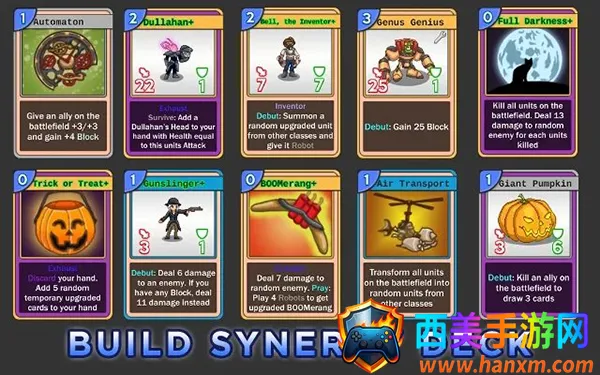 1. 丰富卡牌搭配:玩家能通过使用基础卡牌冒险,在战斗中获取更强力的卡牌,并对不同类型卡牌进行搭配,组建强力阵容,探索过程中不断强大,击败最终 BOSS。