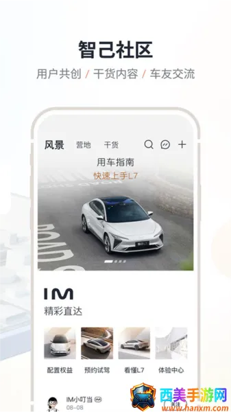 IM智己app是智己汽车官方推出的智能汽车服务软件,提供线上服务、资讯等,有多元社区可交流。用户能在线订车,通过里程开采获原石等权益,其数据驱动品牌进化,还有丰富功能与持续更新。
