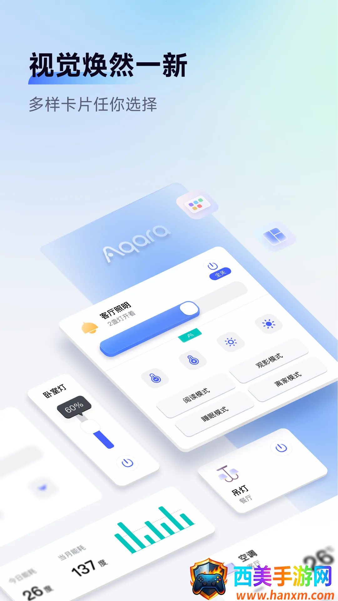 AqaraHome智能家居app可连接智能家居远程操控家电,支持调节灯光颜色、亮度等,能控制设备、查询状态、新建场景与自动化,实现批量控制、自动控制,还有生活场景一键执行、智能联动等功能,最新版本有多项新功能与优化。