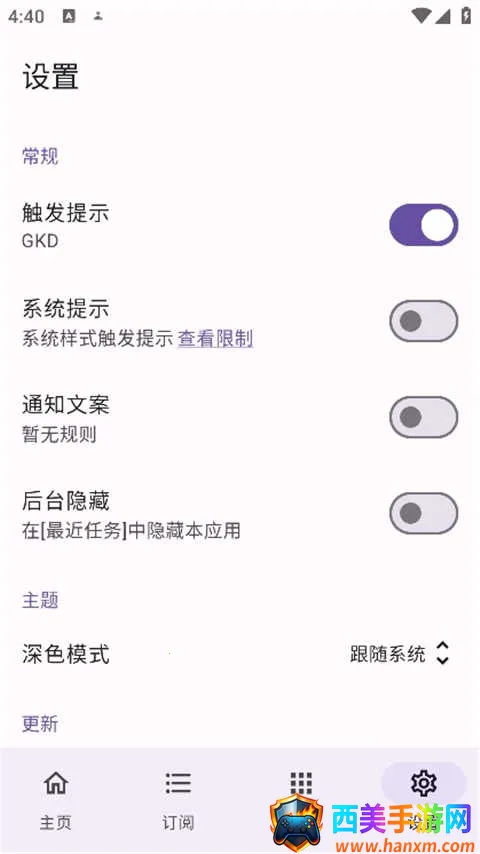 想知道怎么写gkd跳过广告的规则吗?其实有个超棒的软件能帮到你!gkd跳过广告软件能自动跳过各类应用里的开屏、弹窗广告等,让你免受打扰,享受流畅体验。它支持多种广告场景,像开屏、插屏和悬浮广告都不在话下。先进图像识别技术能精准定位跳过按钮,毫秒级完成点击。还有自定义规则功能,能手动添加要跳过的广告页面。这软件特色满满,轻量化设计不占内存,运行稳定还不耗电,关键是完全免费无隐藏收费。玩法也简单,下载安装授予无障碍权限,打开界面选自动跳过启动服务,还能在设置里调灵敏度和延迟。它兼容性强,适配主流安卓设备和应用,规则库实时更新,隐私保护严格。对于被广告烦扰的用户,绝对值得一试!