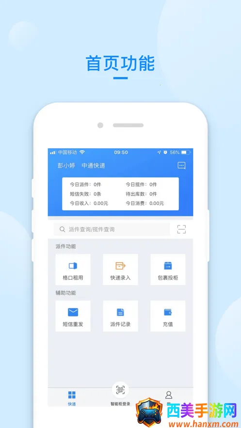 递管家快递员软件优势显著。它**支持短信重发**,能重新给收件人发送派件短信。通过**扫一扫**,可快速查询派件及揽件信息。还能**一键登录**智能快递柜进行包裹投递。其提供的**智能查询服务**十分高效,能精准识别快递号。这些优势让快递员工作更便捷,可快速解决问题,提升工作效率,清晰掌握快递物品分布,更好地完成快递投递任务。