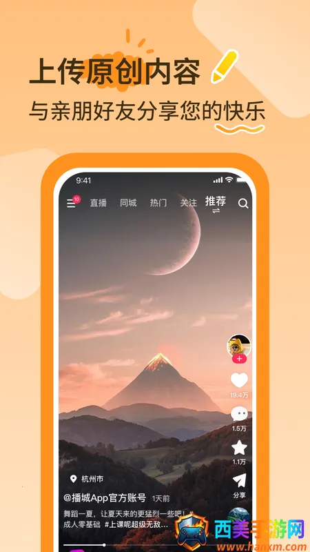 播城是一款热门直播平台,汇聚了众多才艺主播在线互动。它不仅涵盖直播与视频观看功能,还提供交流分享平台,打造出友好欢乐融洽的氛围。在这里,你能看到身边正在发生的故事,感受邻里间的温暖。与朋友的文字互动可传递快乐情感,让友情更深厚。用户还能发布原创内容,分享生活乐趣,结识志趣相投的朋友。无论是喜欢听歌聊天,还是观看才艺展示,播城都能满足你的兴趣需求。现在就下载体验,开启全新社交之旅!
