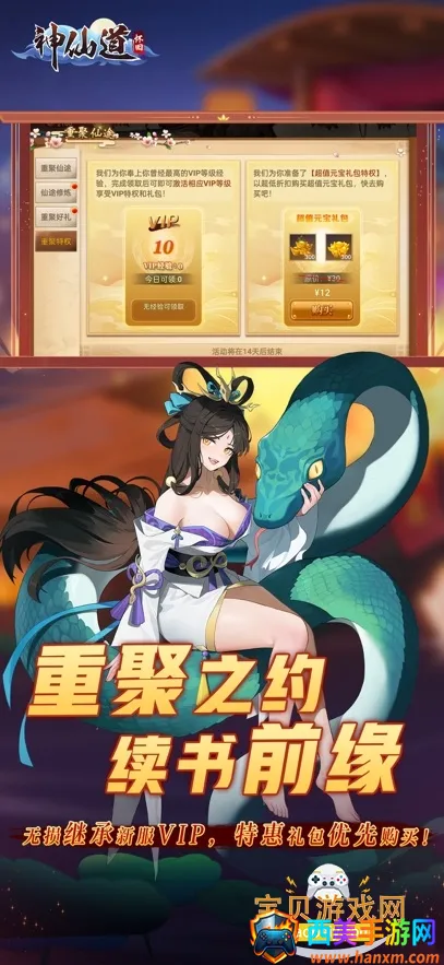 神仙道怀旧服是一款超棒的回合制仙侠游戏。它有着水墨画风和3D场景,完美还原页游经典元素,让人瞬间回到过去。游戏玩法丰富,职业选择多样,像武圣防御强、飞羽暴击高、剑灵闪避高,各有独特技能。后期还能转职,体验不同职业乐趣。伙伴系统也很有趣,能招募强力伙伴,还可传承属性。在这里,你能尽情享受策略搭配队伍的快感,应对各种挑战。日常活动丰富,资源获取轻松,还有快速战斗模式适应碎片化时间。社交玩法也不少,帮派、竞技场等让你结识好友,一起互动。无论是老玩家还是新手,都能在这找到乐趣,快来开启你的仙侠传奇之旅吧!