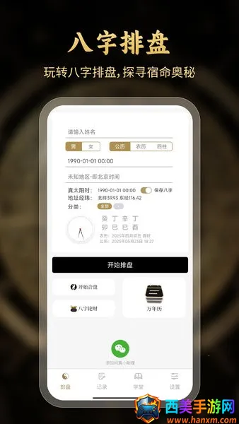 问真八字在线算命软件是命理爱好者与专业研习者的得力助手。它功能强大,支持公历、农历以及真太阳时三种时间输入方式,能确保命盘起得准确无误。一键操作就能自动生成包含四柱干支、十神格局、地支藏干、纳音五行、神煞分布等完整命理要素的详细八字命盘。在此基础上,还会对事业走向、财富运势、婚姻情感、健康状况等人生核心维度进行系统深入解析。软件集权威设计、专业排盘及AI分析于一体,提供精准高效的八字命理研究工具。通过名人案例、古籍匹配及多端同步,兼顾了学习参考文献的便捷与数据连续性。凭借多维解读、断事笔记及深度剖析,满足从入门查询到专业研究的全阶段需求,操作简单直观,方便用户快速完成八字排盘,轻松了解自身命理。