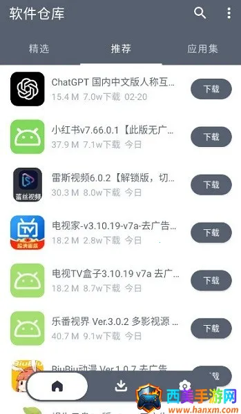 软件仓库最新版超棒!它是个超实用的应用下载平台。这里软件资源超丰富,涵盖系统工具、影视、小说阅读、音乐、办公、绘画等各种类型,不管你要啥软件基本都能找到。而且同一个 app 的不同版本也有,能满足多样需求。它的功能超强大,免费提供各种应用下载,分类详细,找软件超方便。每天更新大量实用软件,像音乐、阅读、广告拦截工具等。还有排行榜实时更新,能参考热门程度。操作简单易上手,搜索框输入想找的软件,马上就能定位。下载速度快还省流量,安装包自动删除不占内存。更厉害的是,这里很多软件是破解修改版,功能全免费且经测试,安全无病毒,放心用!有了它,下载软件轻松又便捷,赶紧试试吧!