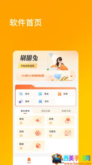 如果你想使用刷兔圈进行图片处理,又希望去除水印并免费使用其破解版功能,那这款软件能满足你的需求。刷兔圈本身就是一款超实用的图片处理工具,功能超丰富。它能进行剪切、旋转、框选、压缩等操作,还能让你轻松完成多种图片编辑,快速生成高质量图片。其界面简洁,功能分类清晰,新手也能轻松上手。内置的剪切和压缩服务,能在保持原图质量的情况下完成操作。有12种主流配色滤镜,可满足不同图片需求。编辑时还能自行搭配贴纸、文字,让图片更有趣。而且所有功能免费使用,零门槛就能完成多样图片编辑。还有17种样式组合用于拼图,选图就能自动生成。总之,刷兔圈破解版无水印能帮你高效处理图片,轻松实现各种创意编辑,非常便利。