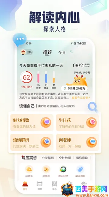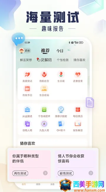2. 功能丰富:涵盖八字算命、星座测算、流年运程分析、解梦分析等众多功能,还有情感问答、海量测试、安心倾诉等特色内容,满足多样需求。