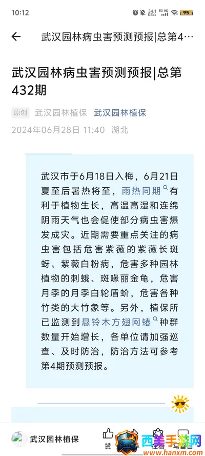 如果你想知道植保卫士是什么药,那它可不是普通的药哦。它是一款超棒的手机软件,专为园艺爱好者和植保从业者打造。能一键拍照识别各类昆虫,还能智能推荐病虫害防治方法,轻松实现园林病虫害的即时识别诊断,提供科学有效的防治技术方案。有病虫害预警功能,能收到市园林科学研究院发布的预警信息,各区道路绿化专业人员还能上传监测数据。市民能通过留言向专家咨询花卉栽培知识,也能拍摄植物或昆虫获得鉴定结果,随时查阅病虫害百科增加植保知识。它能解决园林养护中病虫害防治难题,让你及时了解病虫害情况,提前预防。不管是日常的园林资讯,还是病虫害的精准识别、大数据管理等功能,都能给你带来极大便利,为园林管理工作提供一站式解决方案,让园林养护更轻松。