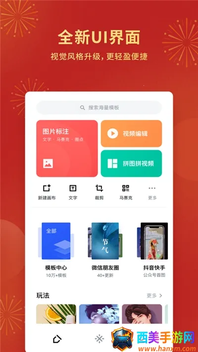 这是一款兼顾图片制作与小视频的全面型工具 APP。它界面简洁直观,操作便捷,让设计变得更加简单和高效。海量模板素材、多种热门主题贴纸水印等实用素材,无论是制作精美图片海报,还是视频剪辑,这款应用都能满足用户的各种需求。不光提供丰富功能,还支持云储存,保证用户数据安全。无损编辑和个性化定制功能让用户体验更加优化。支持视频拼图贴图水印等多种特效,能轻松创建出酷炫有趣的作品。是一个功能强大、操作简单、适合各种场景的创意工具,值得一试。