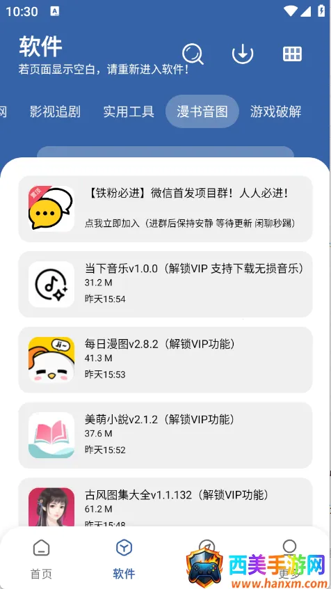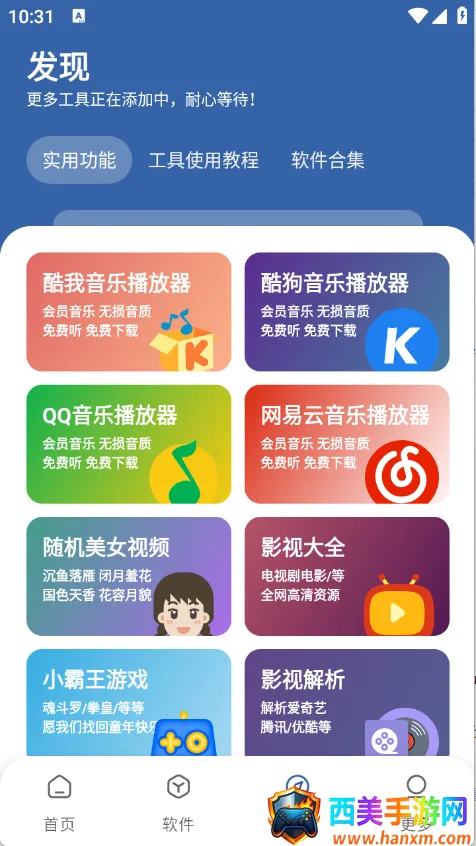 如果你想找各种软件和游戏资源,那软件库全网软件合集类的软件就很适合你。这类软件功能超强大,能解决不少问题。它能把海量软件和游戏集合在一起,不管是常用工具软件,还是热门游戏,在这里基本都能找到。而且资源不断更新,总能给你带来新惊喜。使用起来特别方便,比如你想找个图片去水印工具,或者一款好玩的破解游戏,只需在软件里简单搜索,就能快速找到相关资源,还能免费下载。下载速度也快,不占太多内存,能匹配各种手机型号。有了它,就不用再四处费劲找软件资源啦,轻松满足你对各类软件和游戏的需求,节省了不少时间和精力,是个超实用的资源宝库。