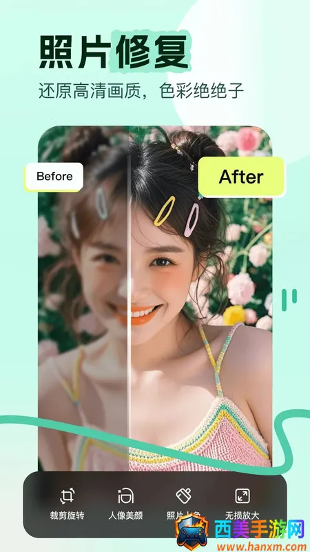 3. 具备多种强大功能,如还原高清画质、根据脸型选完美发型、选择超清滤镜还原气色以及还原高清证件照等。