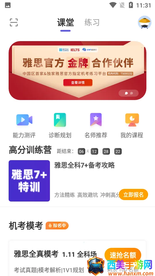 雅思考满分是一款专业强大的雅思学习备考软件。它依托丰富互联网教育技术,针对留学生学习需求,提供口语、听力、阅读、写作、单词等学习内容,致力于带来专业高效学习体验。