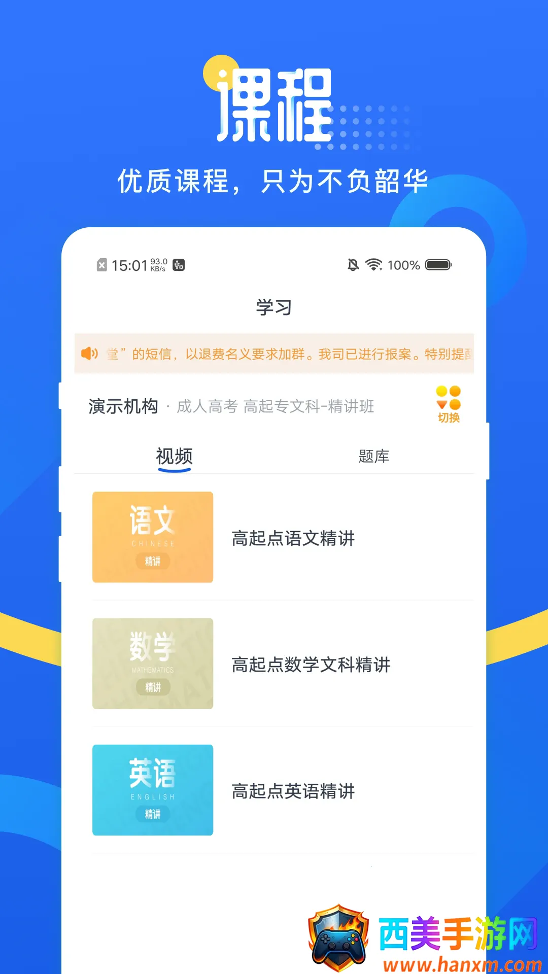 网校云学堂是职业培训考证一站式移动学习平台,涵盖多类考试课程。有丰富课程资源与智能题库,多端观看,多助教答疑,提供考试资讯,能满足不同基础学员需求,助力上岸。