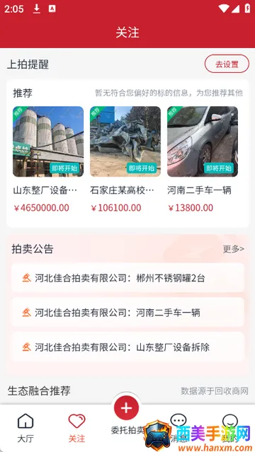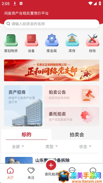 和拍网专注各类物资设备拍卖服务,为用户提供一站式解决方案。它支持废旧物资在线委托拍卖,快速变现增加收入。汇集海量拍品资源,按类别详细划分,方便精准查找参与竞拍。实时更新推送资产招商信息,优化采购决策。其规范的竞拍功能,提供标准竞价流程,保障用户安全参与竞拍。双向资质核验,确保交易合规有序,全流程交易管理覆盖各环节,为用户带来便捷、安全、高效的拍卖体验。
