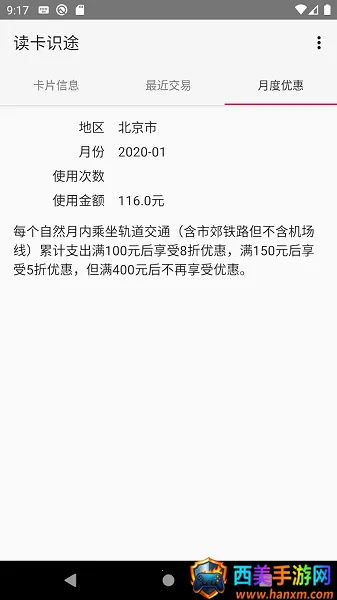 读卡识途是一款公共交通卡信息管理与出行服务软件。它通过NFC读卡技术,实现交通卡余额查询、交易历史追溯、优惠进度追踪等功能,还提供精准定位、实时更新、个性化设置等特色服务。对于经常乘坐公共交通的用户来说,它是一个值得尝试的选择。该软件支持通过手机NFC功能快速读取公共交通卡信息,无需联网即可实时显示卡内余额及最近消费记录。同时,用户可查看详细的交易历史,包括乘坐的车站、公交路线等关键信息。此外,针对支持月度折扣政策的交通卡,App可显示累计消费金额及优惠进度。读卡识途覆盖全国大部分城市,兼容多种城市卡及T-union.交通联合卡,实现一通百通的便捷出行体验。如果你经常乘坐公共交通,不妨来本站下载并体验读卡识途。