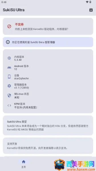 4. 支持4.x - 5.4的非GKI预GKI内核并提供LTS模式,还支持KPM内核模块,移植自Apatch的KPM模块也支持,功能丰富强大。