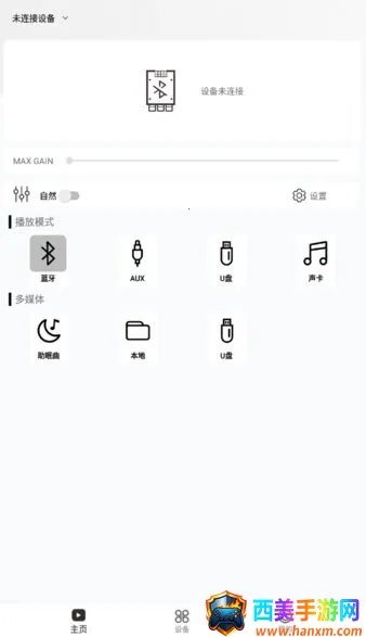 该软件为无治智能蓝牙功放板配套软件,带来诸多优势。**适配蓝牙 5.0**,10 米内稳定传输,连接无障碍。操作简单,能全面管理音频播放,轻松切换曲目、暂停、浏览曲库、设置播放模式等。支持蓝牙、AUX、U盘 等多种输入方式,满足多样需求。还能调节音质,通过旋钮调高低音,主音量调节也更灵活便捷,不同场景都能提供优质音频体验。