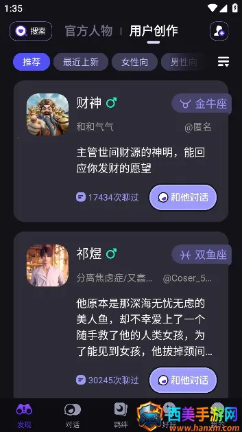 CosLove虚拟情感聊天是专注情感社交的软件,为单身男女打造。能帮陌生人交友脱单,可查看动态、视频约会、随机分配异性。有附近直播、交友、速配等功能,聊天约会简单,社交触手可及。