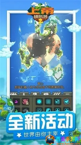 想体验成为上帝,创造并引领文明走向现代的感觉吗?上帝模拟器2就能满足你!这是一款超棒的像素风沙盒模拟游戏。在这里,你既是创世神,能雕琢山川河流、孕育生命文明,也能引发酸雨核弹、带来末日灾变。游戏有人类、兽人、精灵、矮人四大种族,他们会自主建造聚落、发展科技,形成各具风格的文明体系,其走向由你定义。还有上百种道具,让你掌控自然、改写法则,享受创造与破坏的双重快感。你能见证生物适应进化、部落崛起分裂,缔造现代文明。操作简单易上手,纯触控操作逻辑,零学习成本。从运行游戏开始,按提示完成教程,进入主世界编辑模式,投放人类,播撒树木草本与水源,等出现摩天楼、电网与高速公路图标,就标志着现代文明诞生啦,之后就能自由参与全球演化,快来试试吧!