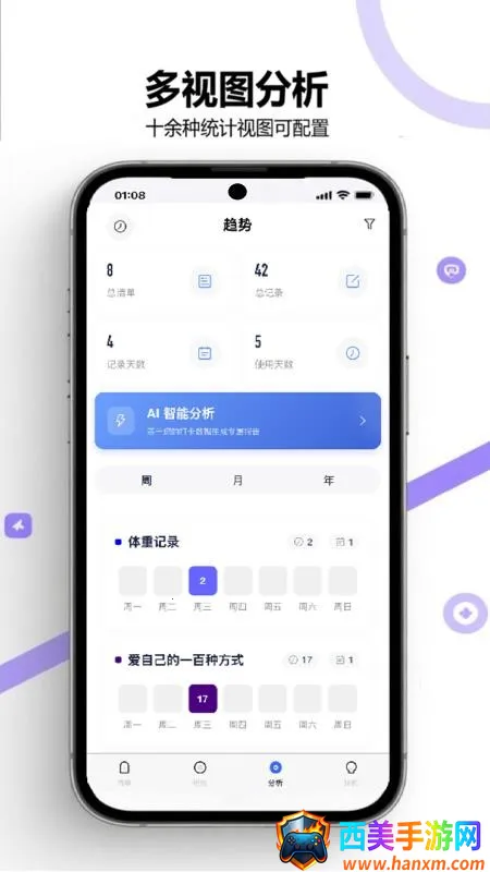 软件能实时进行清单打卡,完成后超有成就感。多视图分析功能可统计打卡趋势,让你掌握自己的进度。还能上传图片识别文字生成清单,AI模型助力生成清单、目标和行动计划等。