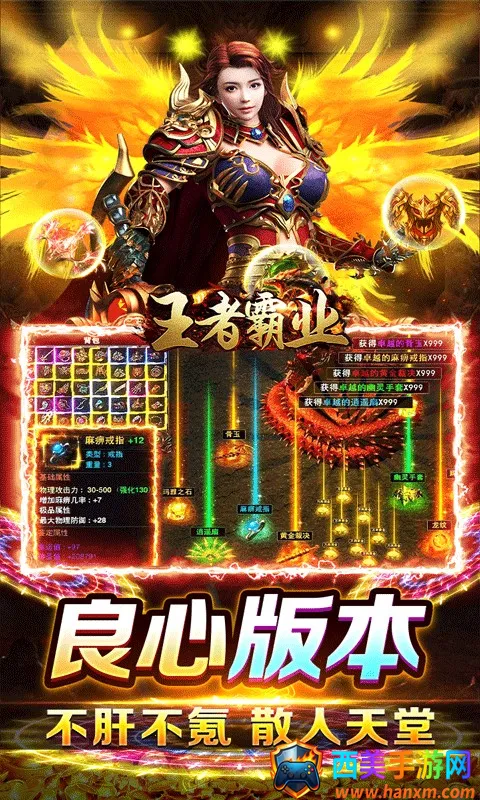 王者霸业最新手机版是一款经典传奇霸业题材冒险RPG手游。有精致画面与丰富元素,无限制技能释放,千人同屏竞技。还有战神无双超变版、西游版爽充版等,各具特色福利玩法,带你重温传奇热血。