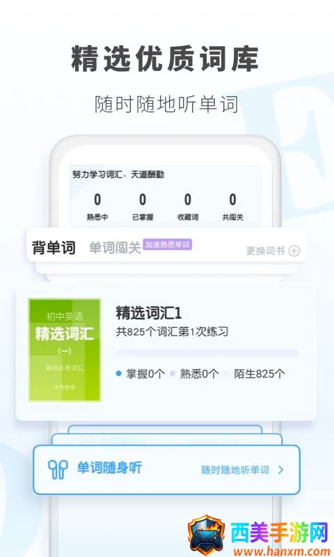 初中英语学习软件优势显著。它有同步教材,涵盖初中三年所有课本教材点读功能,适配各版本最新教材,与中考大纲同步,配有高清真人发音,可跟读可点读,每个单元知识点、语法、词汇都有详细讲解。还有智能题库,百万级题库智能分配选题,包含各省各市各校历年难题错题。科学分类模块提升效率,将精选练习、自学视频、错题本、笔记本四大模块科学分类。此外,有趣的闯关模式能检验学习效率,督促学习,还有名师高分教学视频,不限次数观看,助力提升英语成绩。