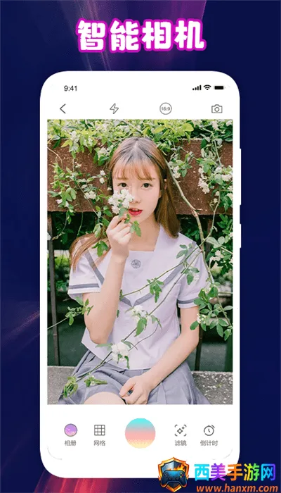 2、智能美颜:通过智能人脸识别技术和极速美颜算法,完美呈现皮肤和头发细节,让自拍更出众。