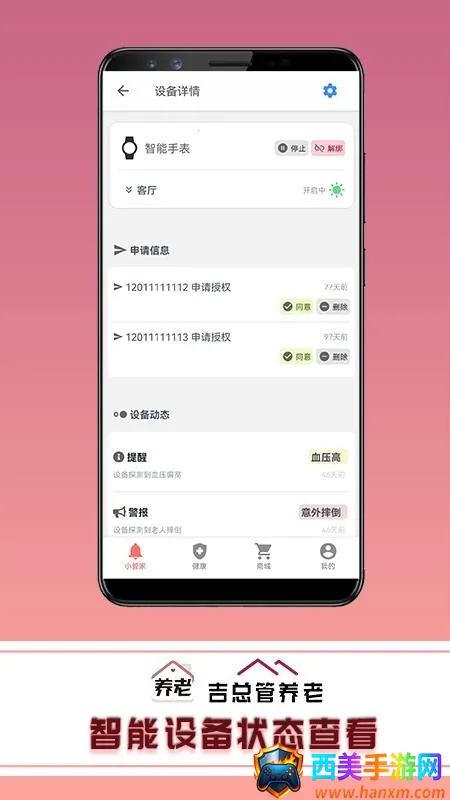 3. 智能管理:用户能对养老设备进行智能管理,轻松管理相关设备,便捷操作设备。