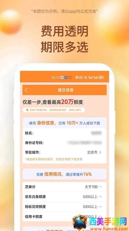 1. 安全透明:提供安全透明的金融借贷申请服务,能详细查看借贷利率和详情说明,让用户轻松选择合适借款方式,还有不错的用户隐私信息安全保护机制。