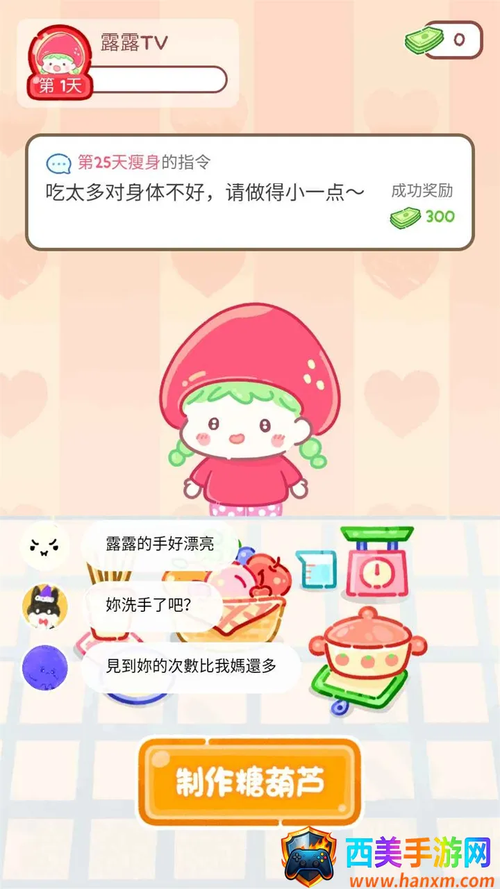 想在线玩糖葫芦达人小游戏吗?这款游戏超有趣!它把糖果色画风融入其中,买卖糖葫芦采用新颖的网络直播模式。在这里,你能用祖传手艺结合现代营销赚钱致富。游戏玩法多样,比如制作糖葫芦,下载后进入页面点击StartLive开始,按顾客要求制作,选喜欢的水果串好后熬糖,按提示操作,裹上糖后喂小人吃完就能得金币。还有点外卖模式,进入游戏选左上角粉红电瓶车按钮进外卖系统,在点餐界面选好食品加入购物车点击Order,订单下达后开始配送,送达点击桌面包裹打开,接着就能开启直播开吃啦。它能满足你体验独特经营玩法的需求,让你在游戏中感受不一样的商业经营乐趣,轻松又便捷,快来试试吧!
