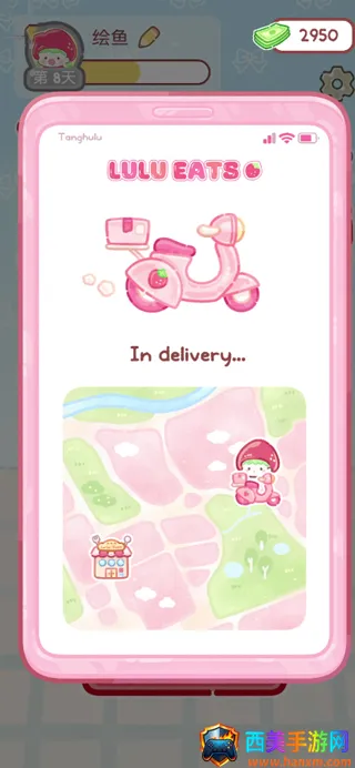 1.进入游戏之后选择左上角的粉红电瓶车按钮就可以进入到外卖系统了。