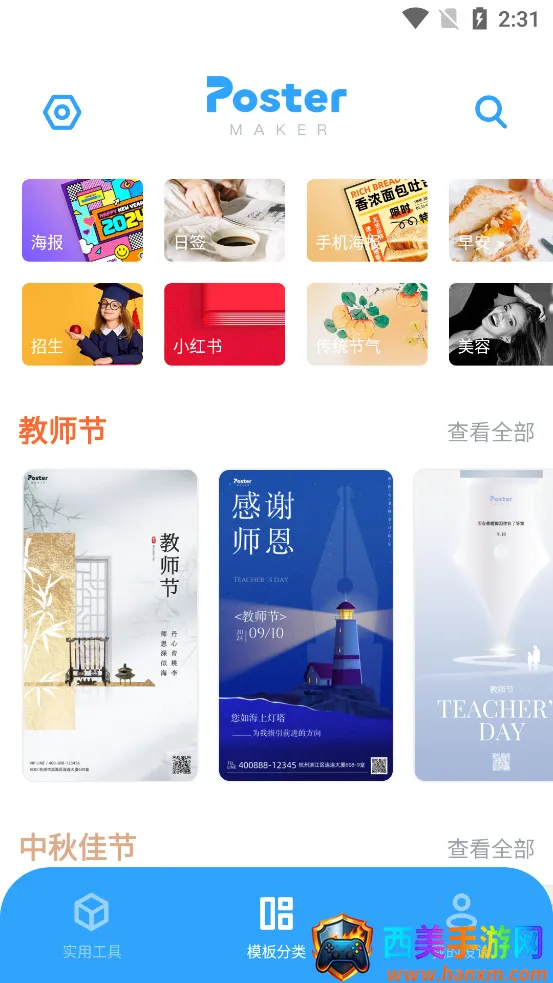 分类详细:对各种海报进行了详细分类,方便用户查找。