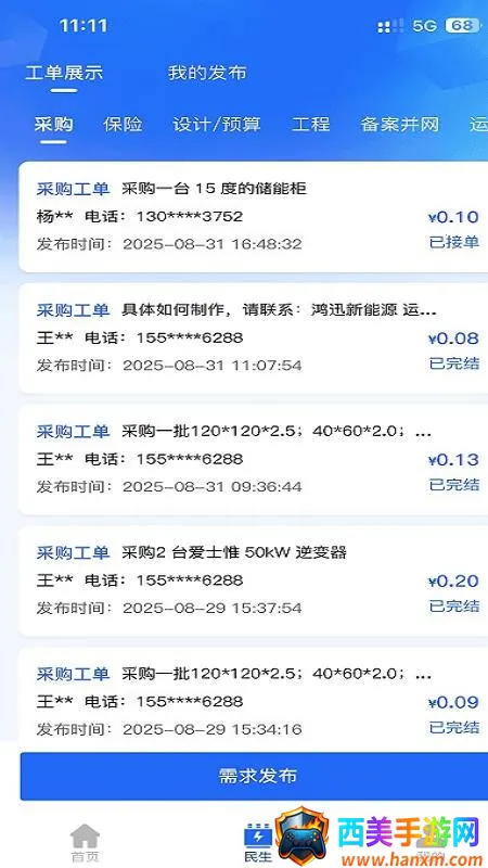 4. 便捷发布:可随心发布需求工单,清晰展示采购工单列表,方便您快捷发布自己的需求。